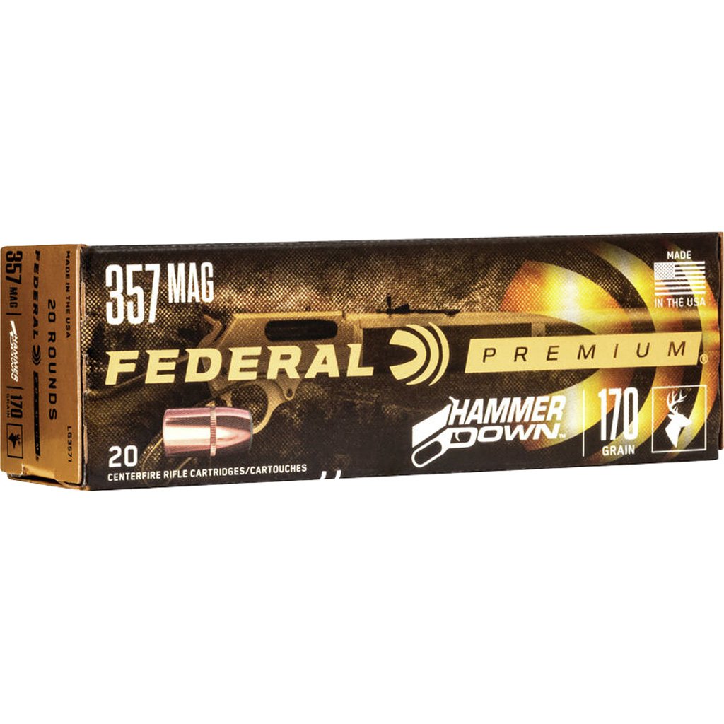 Velocities of HammerDown loads are customized to produce superior ballistics through lever-action barrel lengths. The construction of the soft point bullets has also been adjusted for the best accuracy and expansion at those velocities. The geometry of each round's case, bullet and cartridge ensures flawless cycling through tubular magazine and typical lever-action feeding systems.