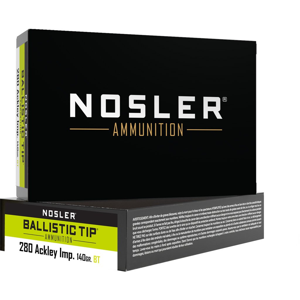 Nosler Ballistic Tip ammunition is loaded up front with the accurate and reliable, Nosler Ballistic Tip Bullet. Every bullet weight and muzzle velocity is optimized for maximum effectiveness on deer, antelope, and hogs.