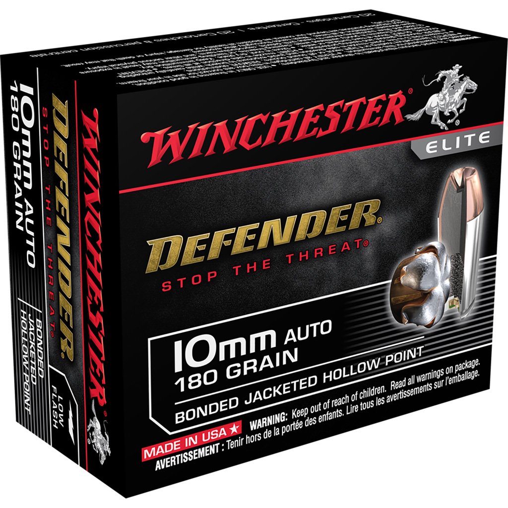 Winchester Defender Pistol Ammo 10mm Luger 180 gr. Bonded Jacket HP 20 rd.