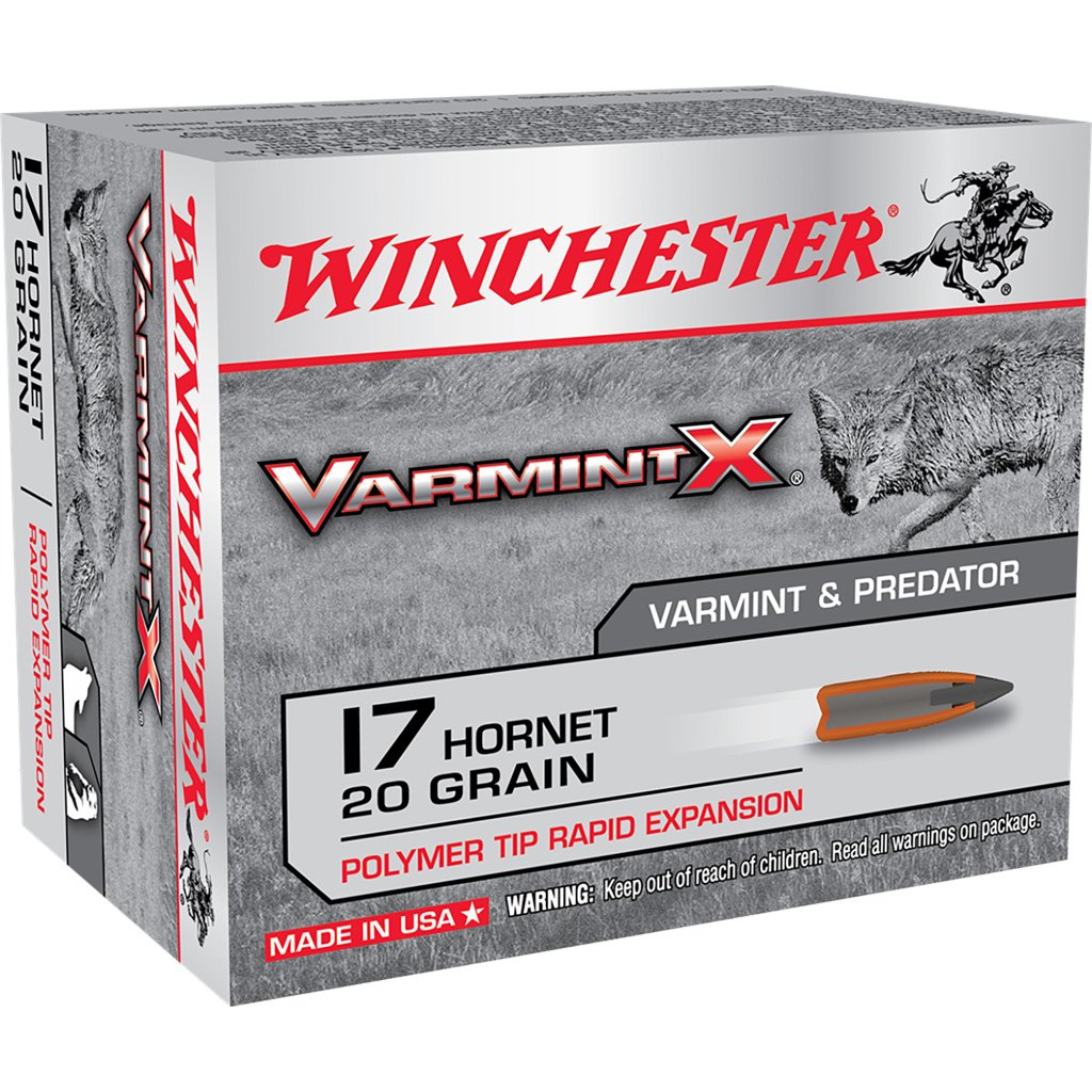 Winchester VarmintX Centerfire Rifle Ammo utilizes a polymer tip over a copper-jacketed, lead-core bullet to deliver explosive expansion on varmints and predators over a wide range of distances and impact velocities. The bullet's polymer tip and aerodynamic profile increase ballistic coefficient to flatten trajectory and reduce wind drift, making it highly effective for predator hunting at long-range. VarmintX Centerfire Rifle Ammo is manufactured under tight quality control and loaded with premium components to ensure reliable function and consistent velocities. Reloadable brass cases