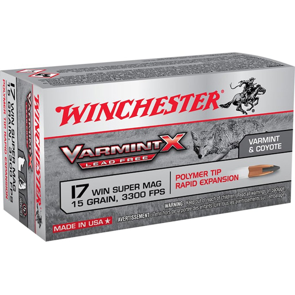 Winchester VarmintX Centerfire Rifle Ammo utilizes a polymer tip over a copper-jacketed, lead-core bullet to deliver explosive expansion on varmints and predators over a wide rande of distances and impact velocities. The bullet's polymer tip and aerodynamic profile increase ballistic coefficient to flatten trajectory and reduce wind drift, making it highly effective for predator hunting at long range.